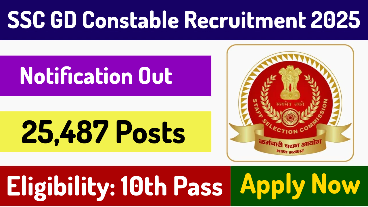 The Staff Selection Commission (SSC) has officially released SSC Recruitment Notification 2025 (F. No. HQ-C-3007/10/2025-C-3) for 25,487 Constable (GD) vacancies in Central Armed Police Forces (CAPFs), SSF, and Rifleman (GD) in Assam Rifles (AR) under the Constable GD Examination 2026.